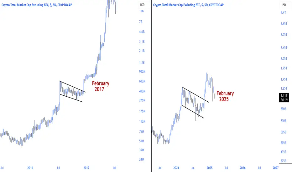 Altcoins run started after the last correction stages towards the end of February 2017, before the parabolic run in the 2016 2017 altcoins bull run.