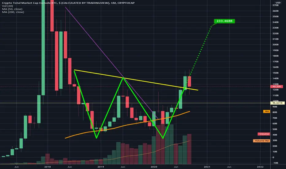 Only 5 days until monthly candle close and it's currently still above the double bottom neckline here a monthly close above the neckline would be a very bullish outcome imo. This is the chart for the alt coin market.