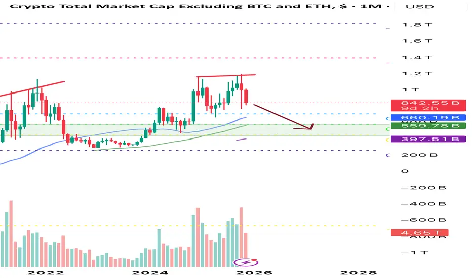 Based on the divergence + fading volume + historical behavior of TOTAL3: