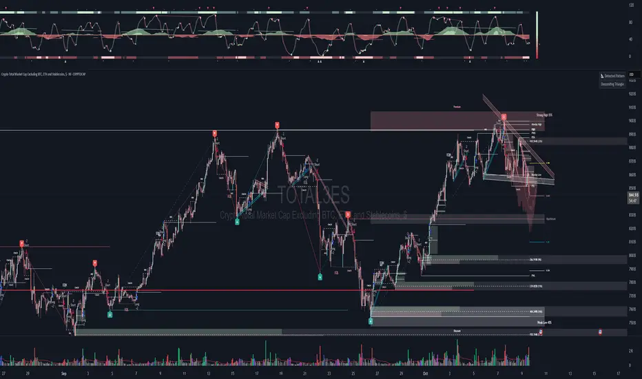 Altcoins have not hit a cycle top as of October 9, 2025. The data and market dynamics suggest altcoins are in a strong mid-cycle phase, with growing momentum and capital rotation from Bitcoin, but not yet at the euphoric distribution phase typical of a cycle peak. Here's why:Market Metrics: The total crypto market cap is $4.23T, with altcoins holding a $1.6T+ share, and the Altcoin Season Index at 55/100 (neutral, trending bullish). Bitcoin dominance is falling below 59%, signaling capital flowing into alts like ETH, SOL, and XRP. This mirrors early altseason patterns seen in 2021, not the broad sell-offs of cycle tops.