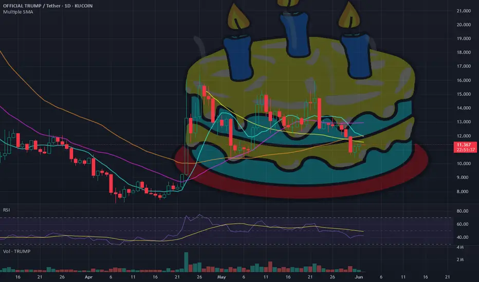 Trump coin is forming rare cake pattern with completion on June 14, Trump's birthday. Price target can be somewhere at $16.