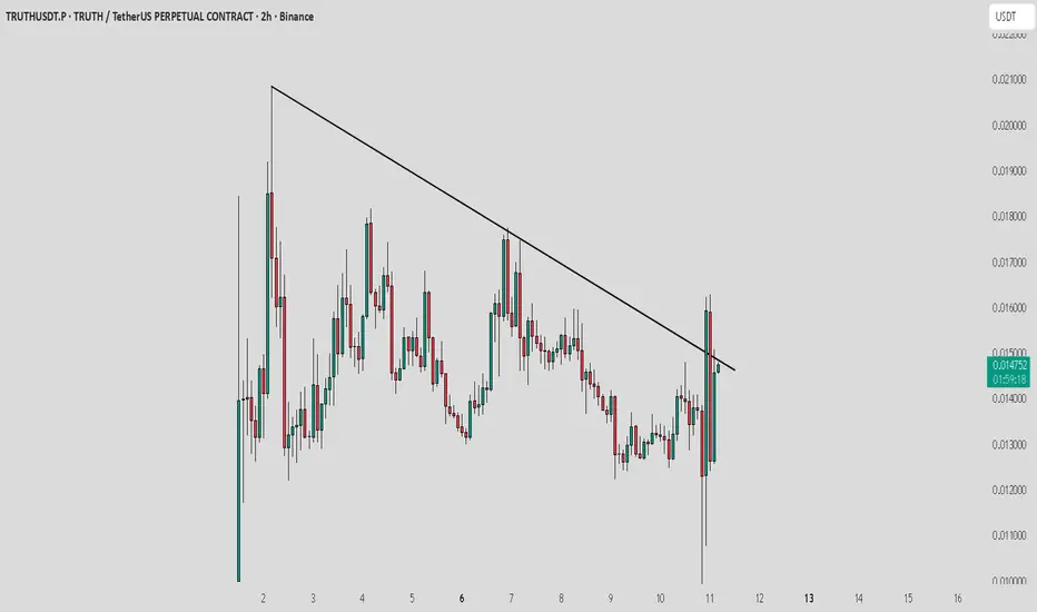 TRUTH / USDT is showing strength after yesterday’s pullback. If the next candle takes support from the trend line resistance, it could confirm continuation and offer a good profit opportunity.
