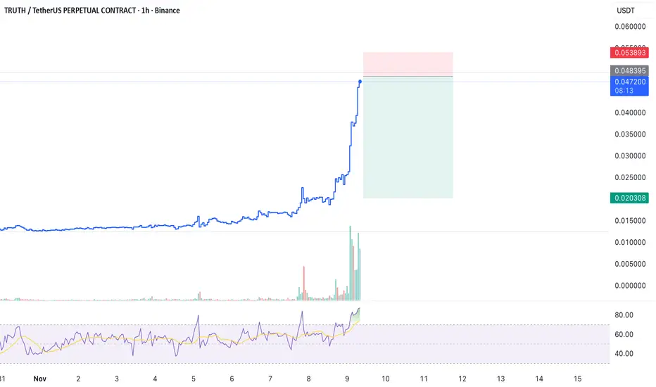 A speculative short setup targeting a sharp correction following overbought exhaustion and a clear intraday reversal signal.