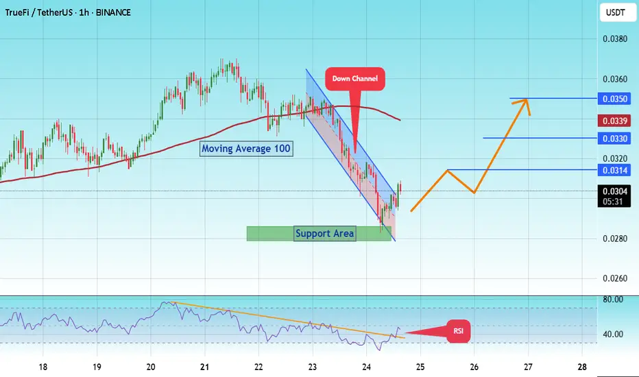 We have a support area at the lower limit of the channel at 0.0285, acting as strong support from which the price can rebound.