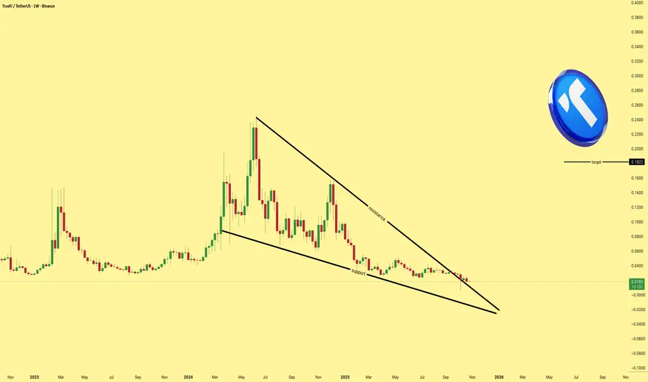 TRU is breaking out from a well-defined descending wedge pattern, signaling the start of a major move. The breakout structure projects a potential gain of up to 900% from the current price. Momentum and volume are aligning perfectly for continuation to the upside.