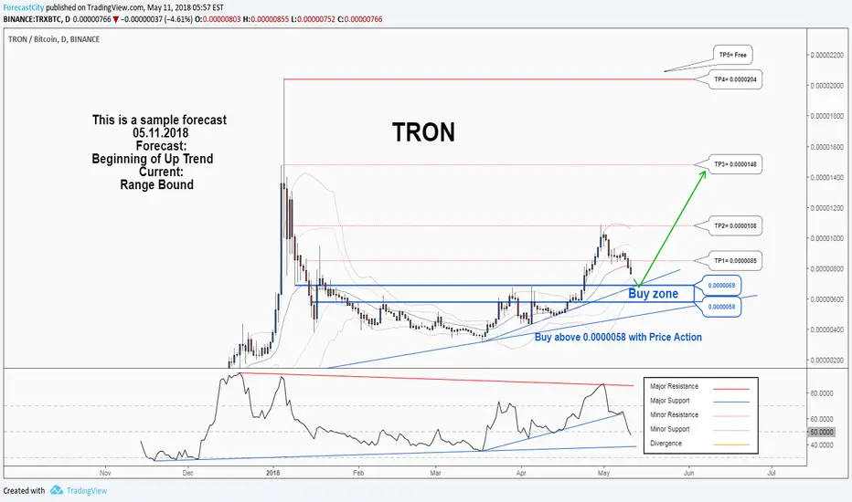 TRON/BITCOIN is in a range bound and the beginning of uptrend is expected.