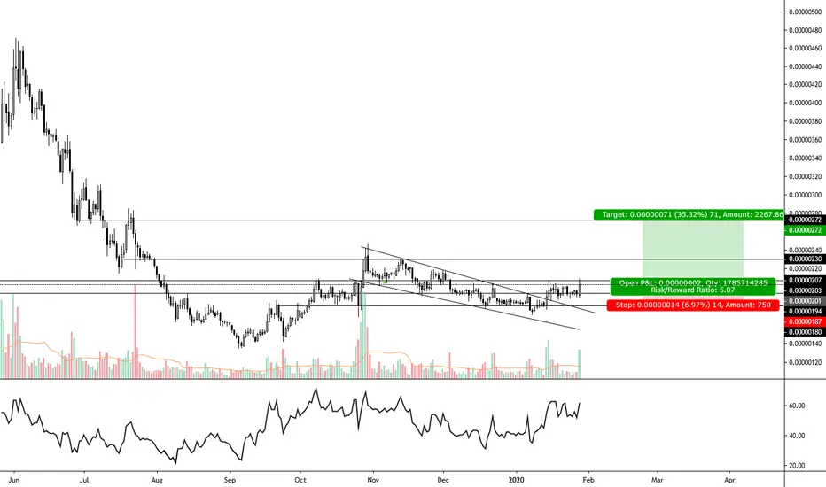 Expecting continuation after breaking out of the 2 months descending channel, good volume and nice r/r.