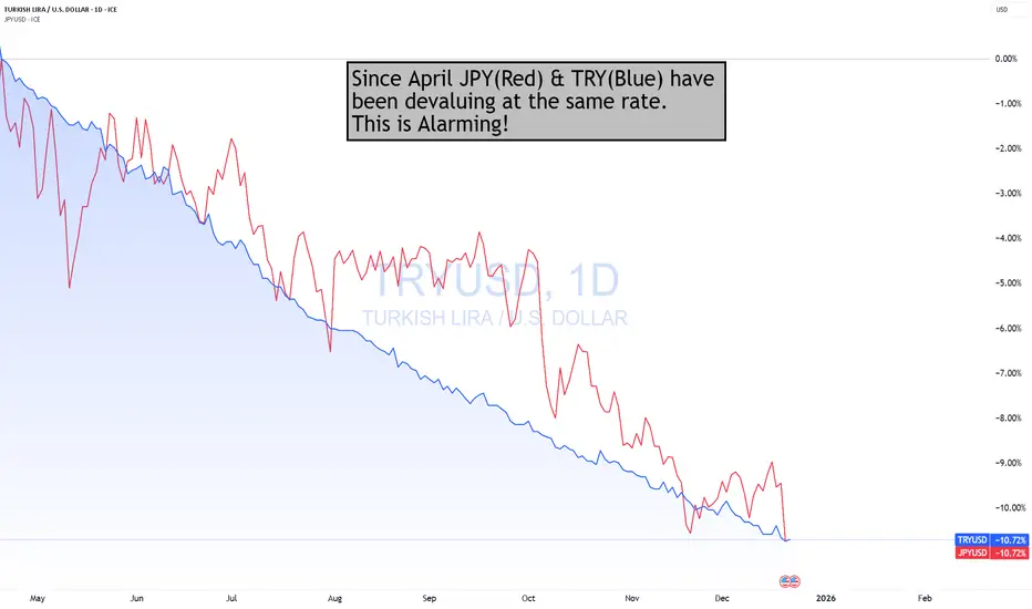 Since April, the JPY has been falling at the same rate as the TRY against the $. This is Alarming, should the trend continue.