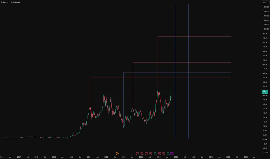 Here are some future levels of significance for Tesla in its uptrend - there should be significant reactions at these levels.