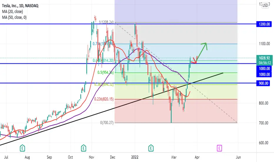 Is TESLA Stock going to push up to FIB 76.8 zone which happens to be the $1100 zone?