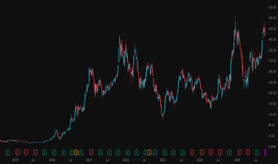 * Targets : $500+ zone, potential retest of 2024 highs.