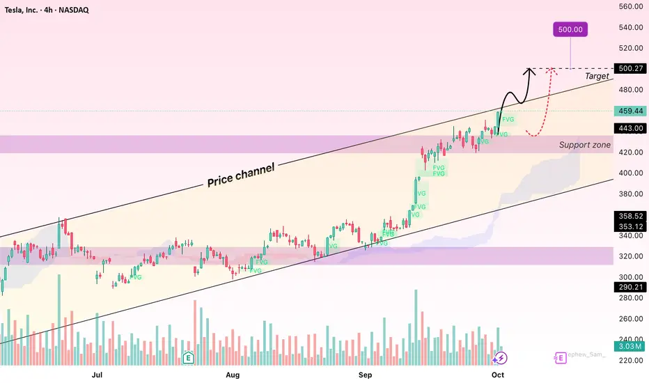 What do you think – will Tesla reach the $470 target in this leg up, or does it need a short pullback before breaking higher?
