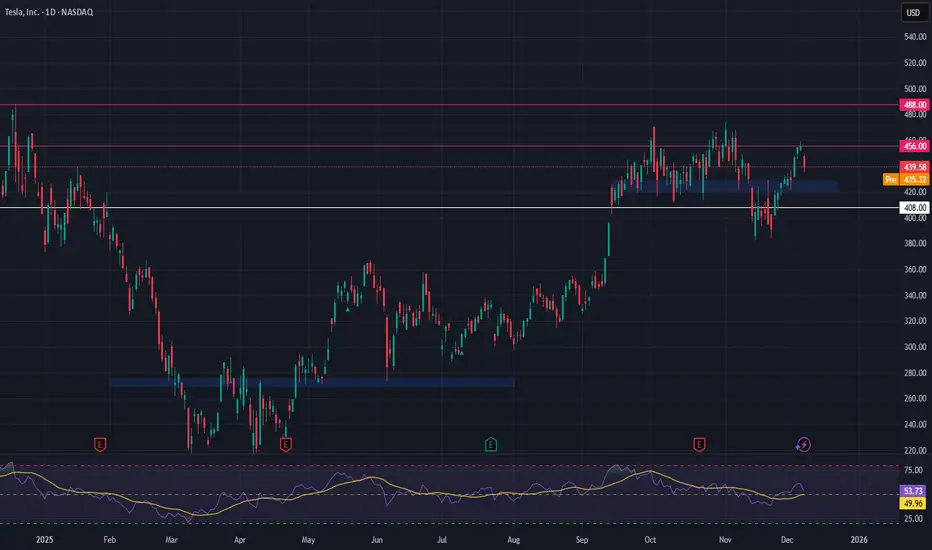 📅 With the FOMC coming up, expect potential de-risking or volatility across markets. That could drag TSLA lower short term, but it also opens the door for a cleaner entry near strong support. Watching the $421–$428 range for signs of a bounce or consolidation.