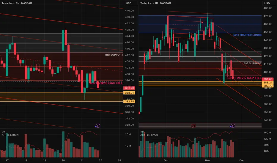 PWL at 382.78–388.21 must hold, or buyers get steamrolled. We’re trading below the 50-day on the daily, and any strength is likely to be sold into. I hate leaning this bearish, but if there’s going to be a short-term bounce, it *starts* with the PWL holding. With heavy overhead supply near 400, this is not a name where you want to be the early hero.