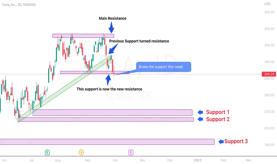 As I said in my prior analysis, breaking this main support will be quite negative for TSLA, but this week we ended up finishing just below the key support that had been holding TSLA for so long, but now that we have broken it. Expect a bearish October in which we will test the next levels of support shown on the chart.