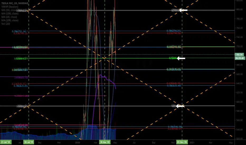 Key resistance and support (profit trims) for TESLA short adds from 745.00 Friday marked with white arrows.