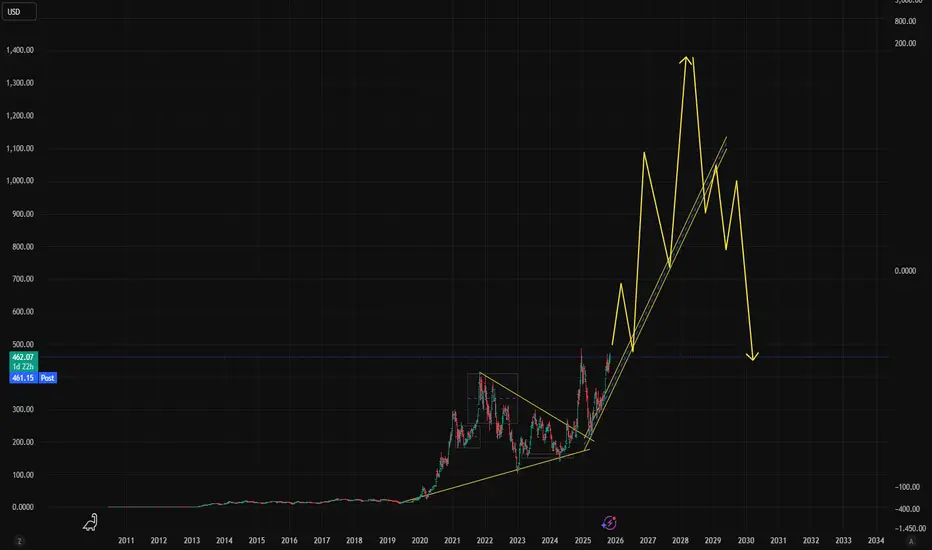 Possible bull market until the end of 2026 which is where we can start to see a break down in trend which would possibly be above $1000+ per share.
