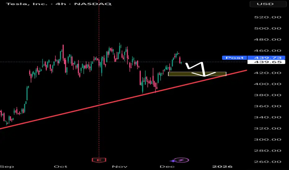 As long as Tesla stays above 420, the 4H bullish trend remains intact.