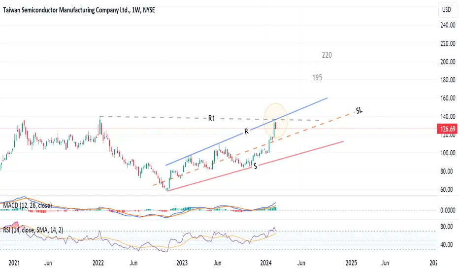 Above the R line, a rising expanding wedge pattern will be completed, and the target will be 195 then 220