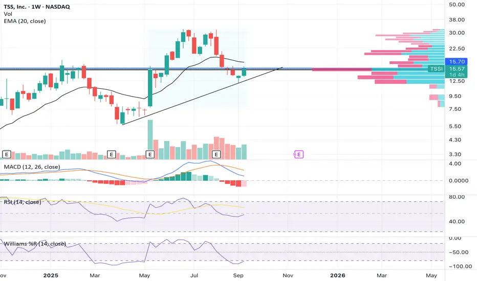 needs to get through neckline at 16.20ish... head and shoulders resolves at target 20.50ish. if smallcap/rate cut momentum continues I think this could push to 30. stop still a daily close below 13.88. trade set.Note