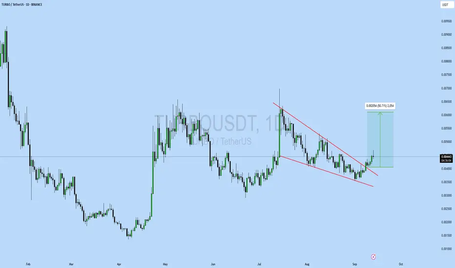 TURBO is breaking out of a falling wedge on the 1D timeframe. The breakout confirms bullish momentum with structure favoring continuation toward $0.00650. Always use proper risk management.