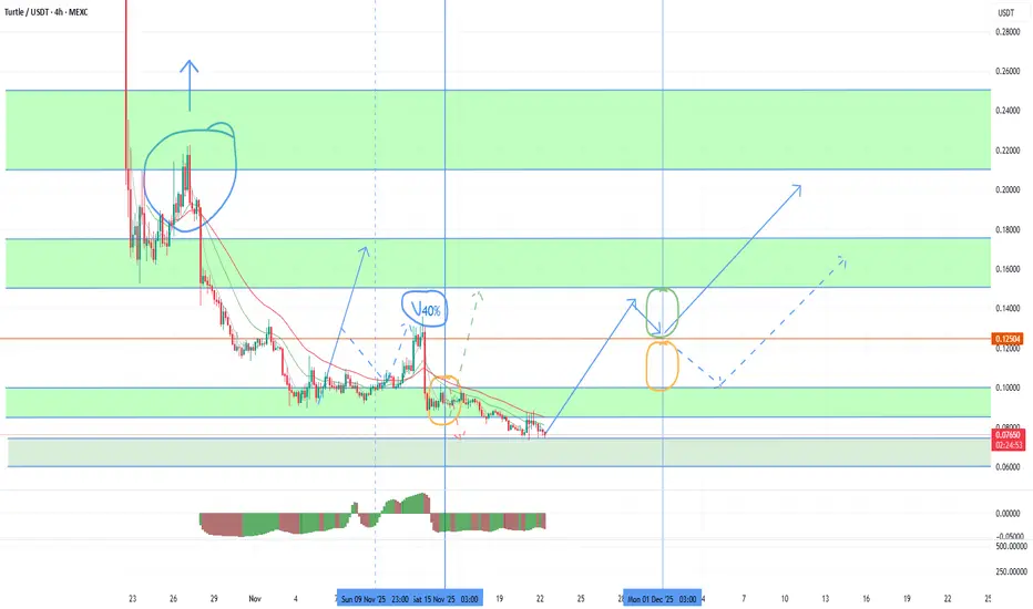 Against the background of an attempt to reverse the quarter, today there is a new opportunity to make money on TURTLE. Among the recent binance listings, this token is in the most oversold position and is preparing for a powerful growth wave to work out strong technical signals for a retest of 0.21-25 at least and up to 0.5 with a steadily growing market. After the last publication, a wave of growth was expected to retest the nearest resistance of 0.125, which was successfully broken through with a local break. The fall of ETH to the 2600 test was the reason for the disruption of the TURTLE trend, which I warned about, but it provided an excellent opportunity for additional scalping. In the new growth wave, there is a high probability of stable consolidation above 0.125 with tests of the next target range of 0.150-175. The second half of the quarter opened above 0.09, which also gives a signal for a stable exit above 0.1. With sufficient volatility, the current monthly candle will turn bullish with continued growth in the first half of the new month. Among the recent listings, MITO and BMT also have great growth potential with growth targets of up to 300-400%.
