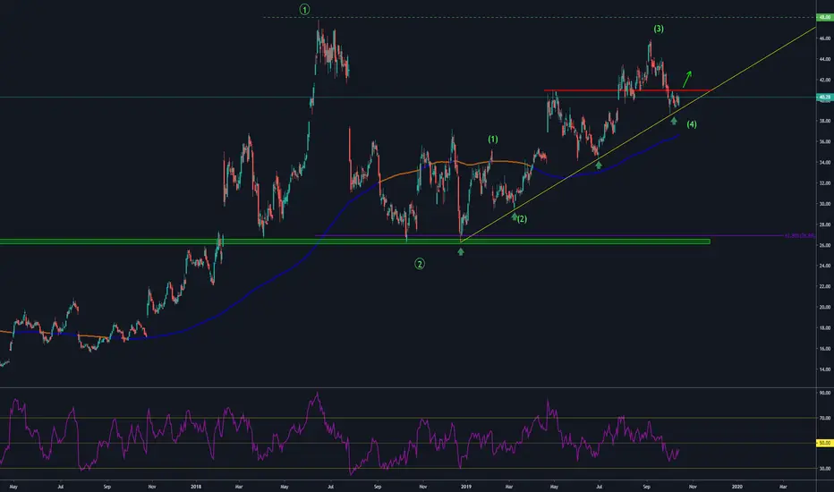 Another test on a confirmed trend line, seems like wave 4 is about to finish.