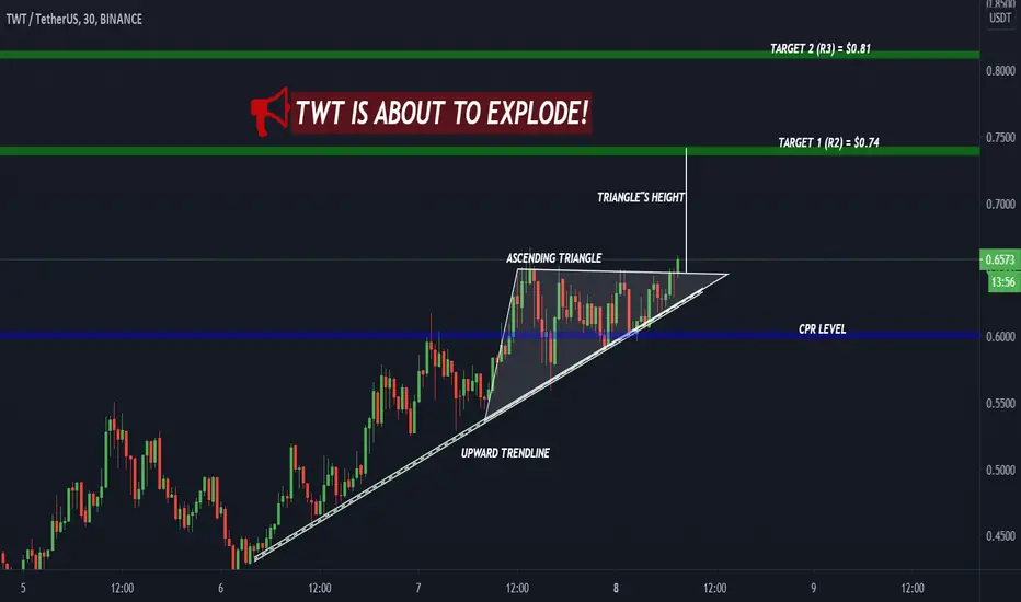 TWT price formed the ascending triangle, the price bounced off the CPR level and breaking through the triangle's upper band now.