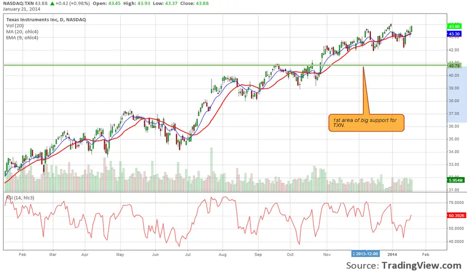With the big put action today in TXN pre-earnings, look for 40.88 to be tested.