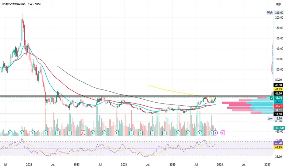 $U (Unity) has entered an accumulation channel and is now testing the channel's highs. The 200dEMA is a resistance, which, once broken, will allow prices to emerge and head towards new highs. I am obviously LONG.