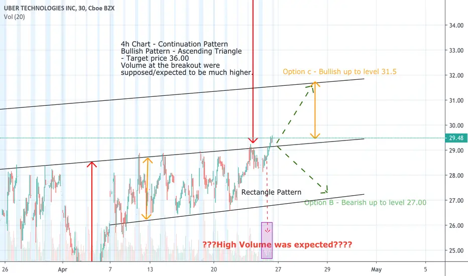 Against the Odds and Fundamental Uber seems to go up. Volume does not support the breakout so option B could be still Open