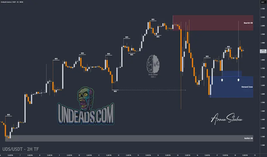 Looking at the 2-hour chart, we can see that yesterday the price surged by 19%, from $1.70 to $2.02, before correcting again. Right now, UDS is trading around $1.85. If the price can hold above the $1.78–$1.83 demand zone, we can expect more upside.