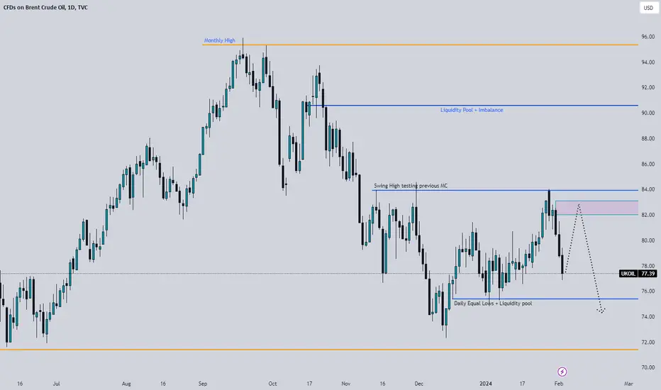 UKOil tested swing high and moved aggressively lower. This week I will be looking for a selling opportunity to take this pair lower on smaller timeframes.
