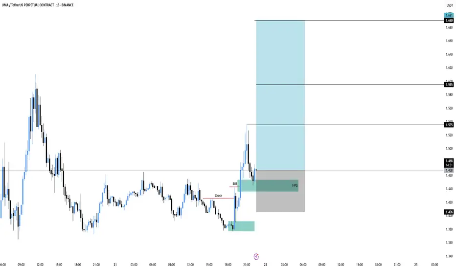 UMA has shown a clear change of character with a bullish break of structure. Price is now retesting the fair value gap (FVG) area, setting up for a possible continuation move upward.