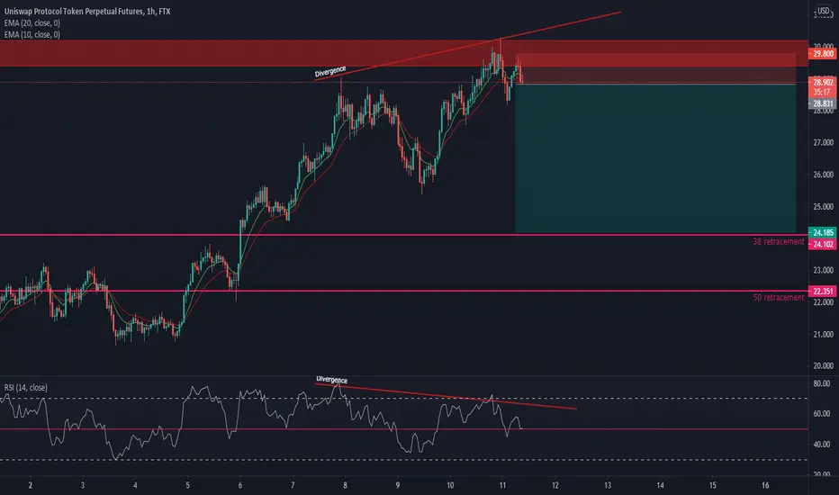 Looking at shorting UNI-PERP down to the 38 or 50 fib retracement on the daily which would still indicate a new bullish run.