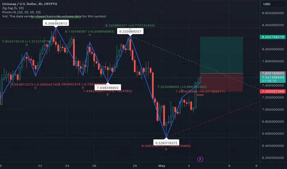 As of the latest trading session, UNI is priced at approximately $7.54. The price has been oscillating within a confined range but showing potential for an upward breakout based on current momentum and technical setups.