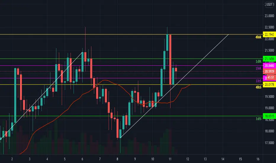 UNI usdt gradual climb back to higher timeframe resistance levels after a significant bearish candle down to $18.