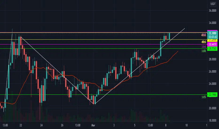 If it breaks the 1 & 4 hour resistance level to clear the $33 marke it'll go on to make all time highs.