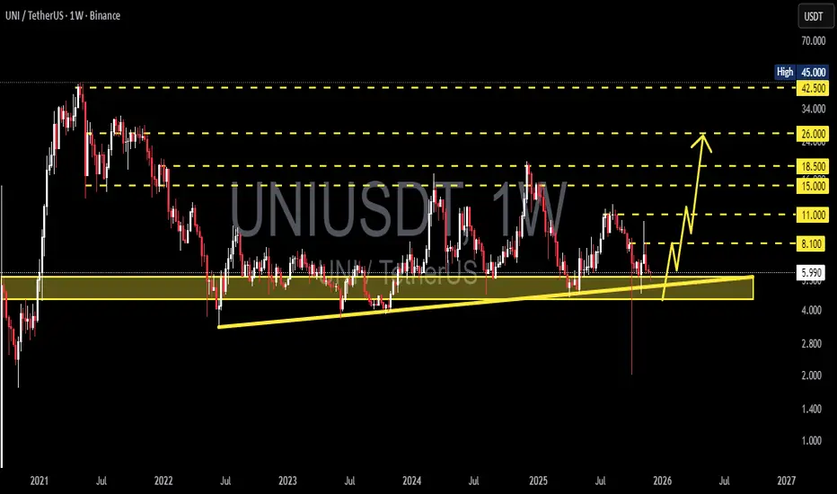 #UNI #UNIUSDT #Uniswap #CryptoAnalysis #WeeklyChart #SupportZone #BreakoutOrBreakdown #BullishScenario #BearishScenario #CryptoMarket