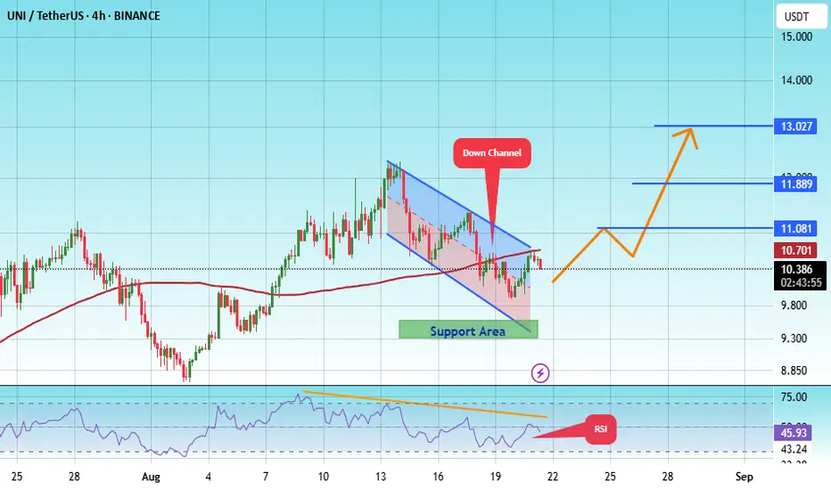 There is a major support area (marked in green) at 9.50, which represents a strong basis for the upside.