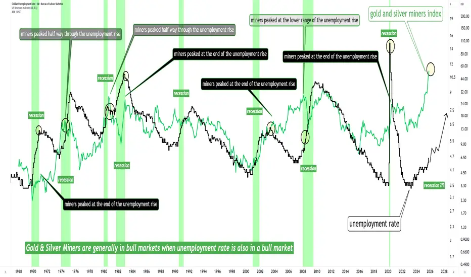 Gold & silver miners are STILL in an area where they are VULNERABLE to entering important corrections as unemployment rate goes up (they have been for a while now).
