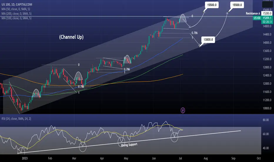 Buy this pull back and target 15500. The 4hour RSI holding its Rising Support, should favor this trade.
