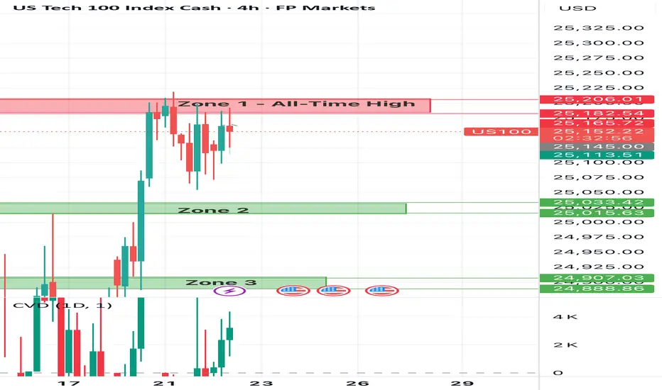 Zone 2 marks the first layer of demand formed after the most recent breakout attempt. Buyers have consistently stepped in here to defend structure, suggesting it’s a valid short-term support area. If price remains above this level, the bullish structure remains intact. However, a clean break below Zone 2 would likely open the door for a retracement toward Zone 3.