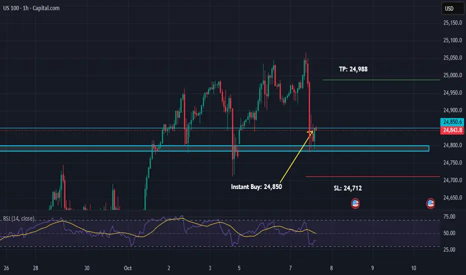 US100 is showing a bounce from Support. We can take a 1:1 trade here. Let's see how it goes.