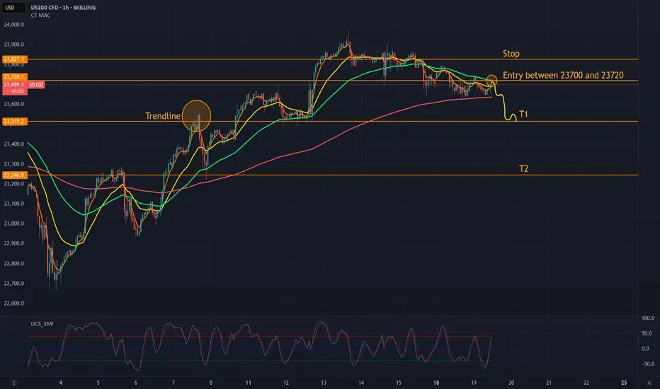The Nasdaq 100 (US100) is currently trading around 23,700 and has shown clear signs of weakness in the past few hours.