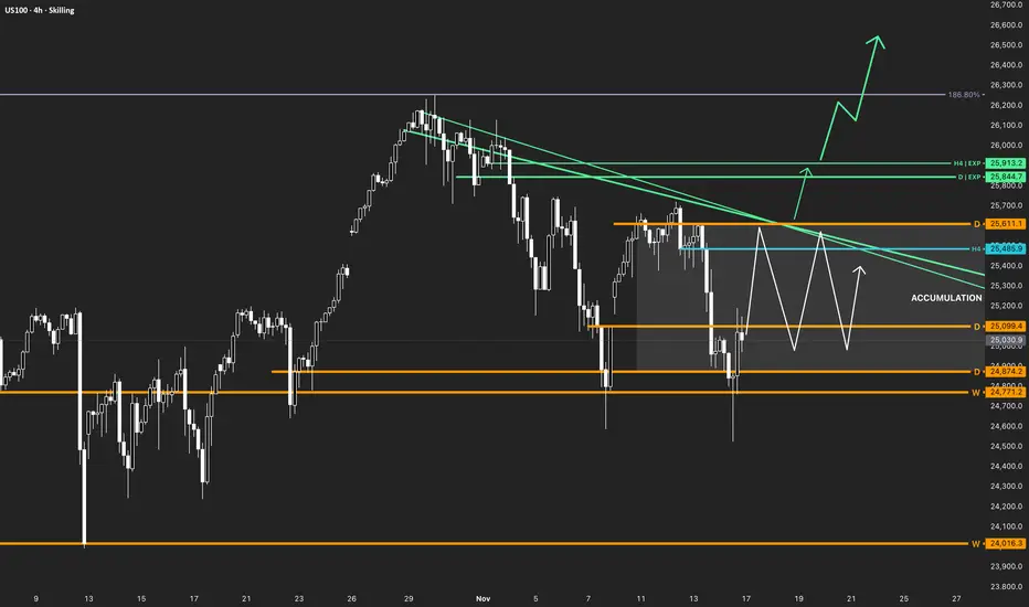Bullish: D Close > 25,611.1 | → 25,844.7 → 25,913.2