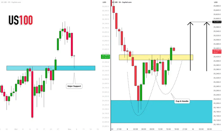 A formation of a cup & handle pattern on that and a breakout of its neckline