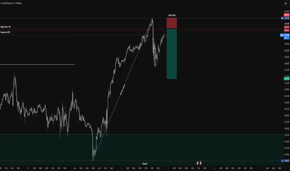 Price rejected the premium line (75%) with negative delta and LVN, showing lack of acceptance.