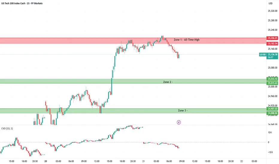 US100 – 4H Technical Zone Analysis