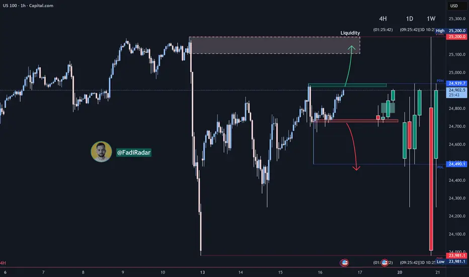 If the price breaks above 24,900 and holds, this could support further upside movement toward the liquidity zone around 25,200.